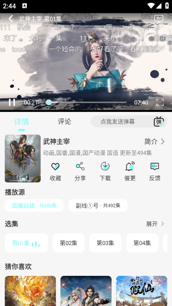 4、内置弹幕系统,支持实时发送、点赞及举报弹幕,用户可参与话题讨论或创建专属弹幕池。