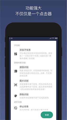 1、贝利自动点击器软件支持音量键控制,无需解锁屏幕,通过音量键就能启停点击任务,便捷又隐秘。2、体型小不占你的手机运行内存,合理的开展各种游戏或是运用輔助。