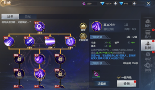 3、每一竖列的技能为一个套路分支,不同数列的套路混搭的话,难以形成固有的效果。技能升级解锁时有一定的条件。