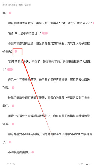 2、阅读时每个段落旁边都有评论,点一下那个粉色的图标。