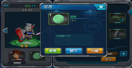 值得注意的是,一旦机体装备了哈啰,如果要替换或者卸下哈啰是需要花费20钻石,但如果对哈啰进行升级,则不受限制。哈啰的升级采取的是吞噬哈啰来升级,每吞噬一个哈啰都会获得一定的经验。