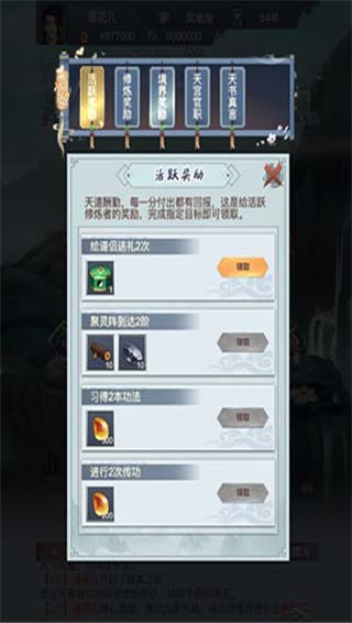 2、在活跃奖励中道友可以领取对应的活跃奖励。