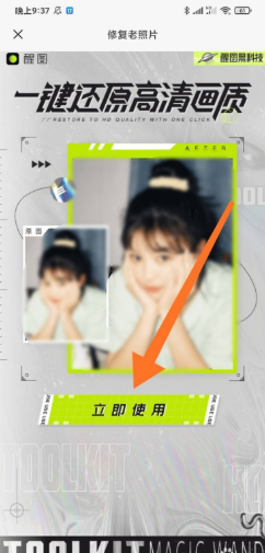 首先,打开软件的首页,找到并点击“一键还原高清照片”栏目,然后点击页面下方的“立即使用”按钮。