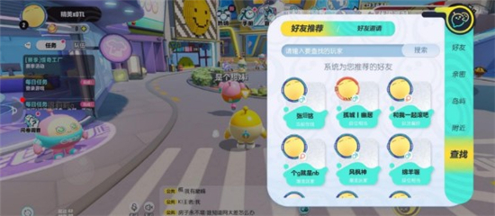 在打开定位系统的前提下,游戏中下方聊天框右边有个好友按键,点第三个附近可以找附近的好友