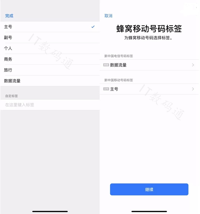 在第二个号码激活后,请为您的两个号码分别加上标签。例如,您可以将一个号码标记为“商务”,将另外一个号码标记为“个人”。会在以下情况下使用这些标签,以区分您使用的号码:拨打或接听电。