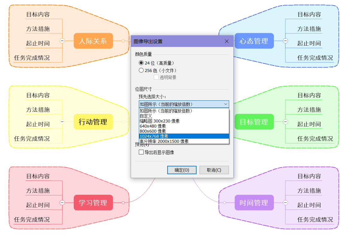 当然我们还可以自定义图片像素,想要多大就设置多大。不过还是建议使用缩放倍数来进行设置,自定义像素往往因为不知道思维导图整体比例,会多出大量的空白区域,影响图片显示。