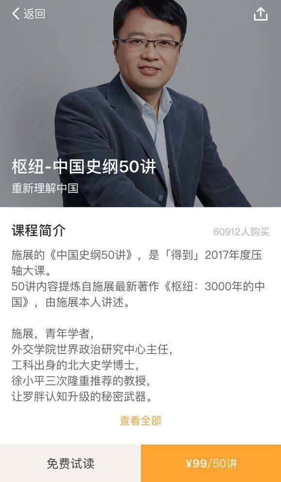 《枢纽》这本书一共50万字,其实是在《枢纽》这本书的框架下重新生产的一个音频产品,这门课共分50个核心话题,每个话题大概会用十分钟时间讲明白一个关键问题。